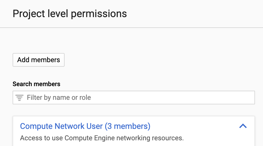 Grant Compute Network User role to the Spot Service Account you created when you first created your Spot Account.